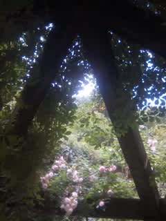 バラの隙間から木漏れ日が柔らかく差し込み、ここだけ凄く涼しい。